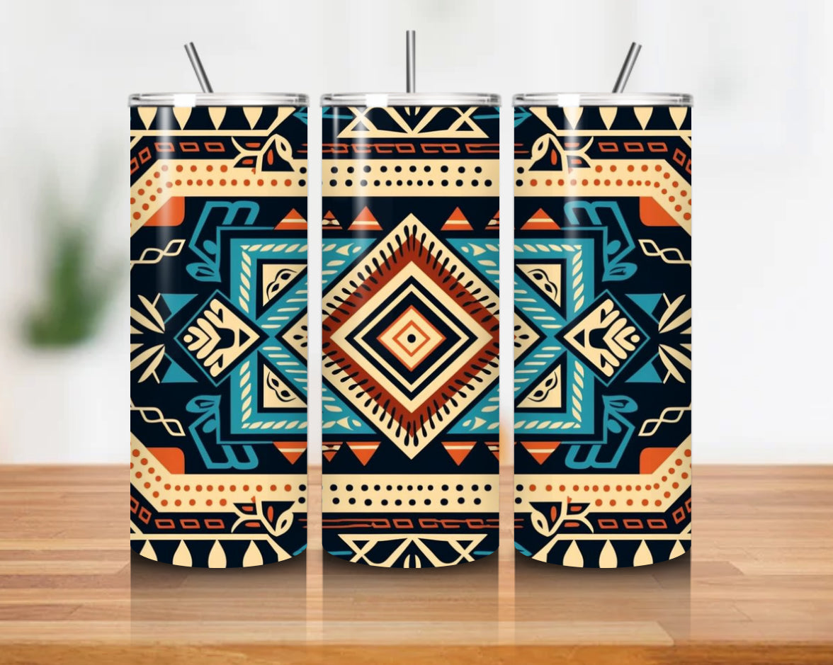 Aztec Sunset Diamond wrapped around a 20oz stainless steel cup with a clean, glossy finish.