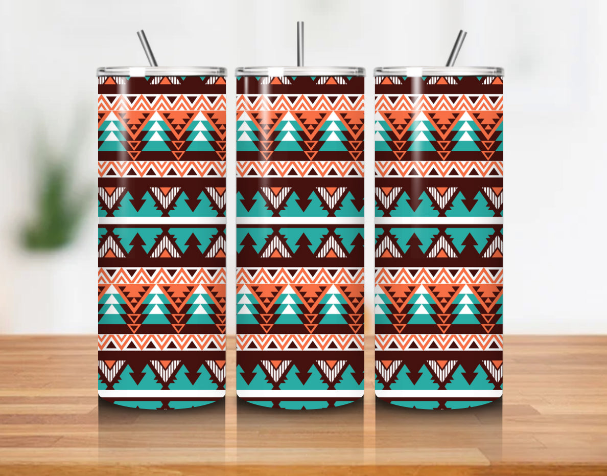 Retro Tribal Layers wrapped around a 20oz stainless steel cup with a clean, glossy finish.